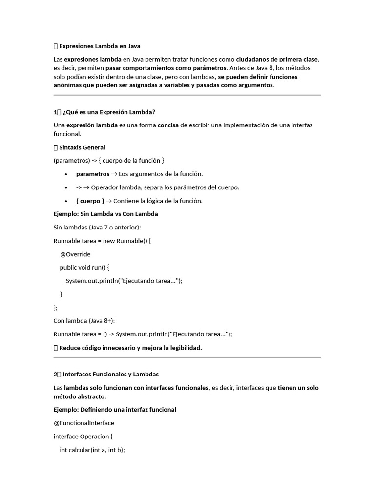 declarativa. Se usan ampliamente en Streams, colecciones, hilos y APIs funcionales.