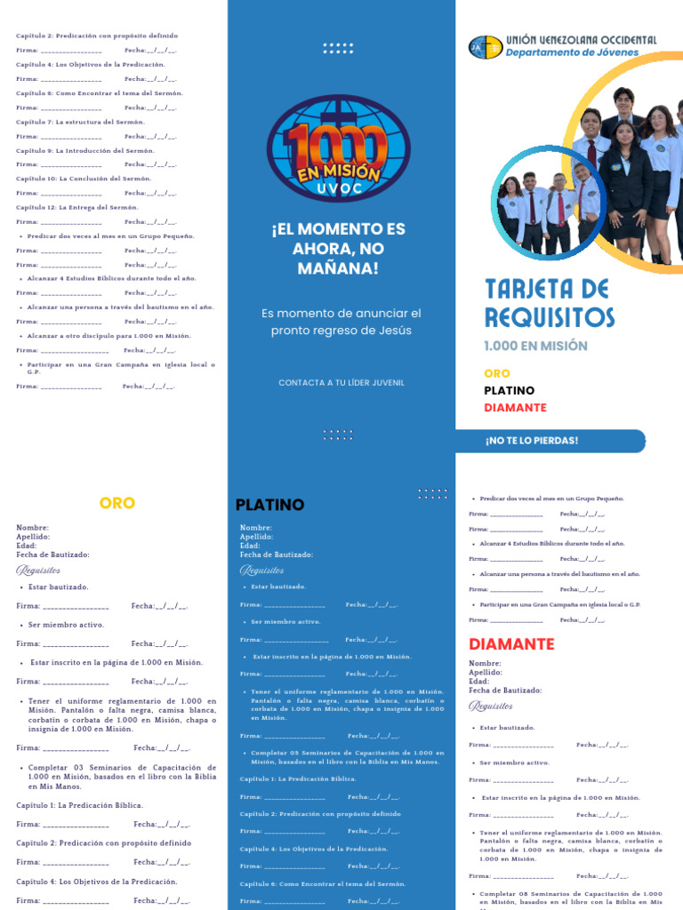 Firma: _________________ Fecha:__/__/__. Tener el uniforme reglamentario de 1.000 en Misión.