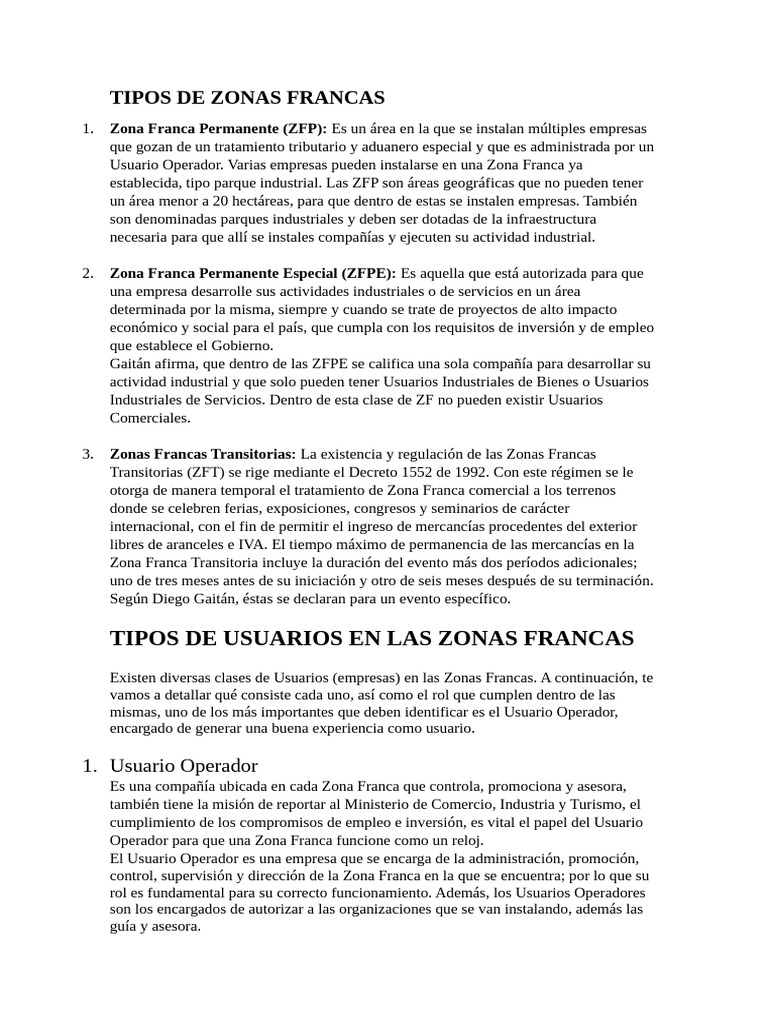 TIPOS DE USUARIOS EN LAS ZONAS FRANCAS