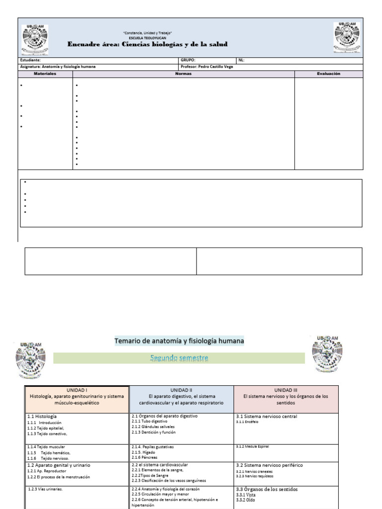 Asignatura: Anatomía y fisiología humana, Profesor: Pedro Castillo Vega