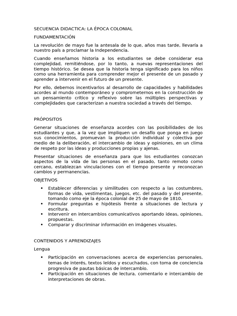 SECUENCIA DIDACTICA: LA ÉPOCA COLONIAL