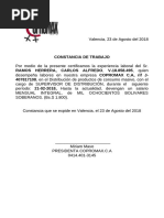 obtención de éste documento, según lo establecido en Gaceta Oficial N° 41.470 de fecha 29 de