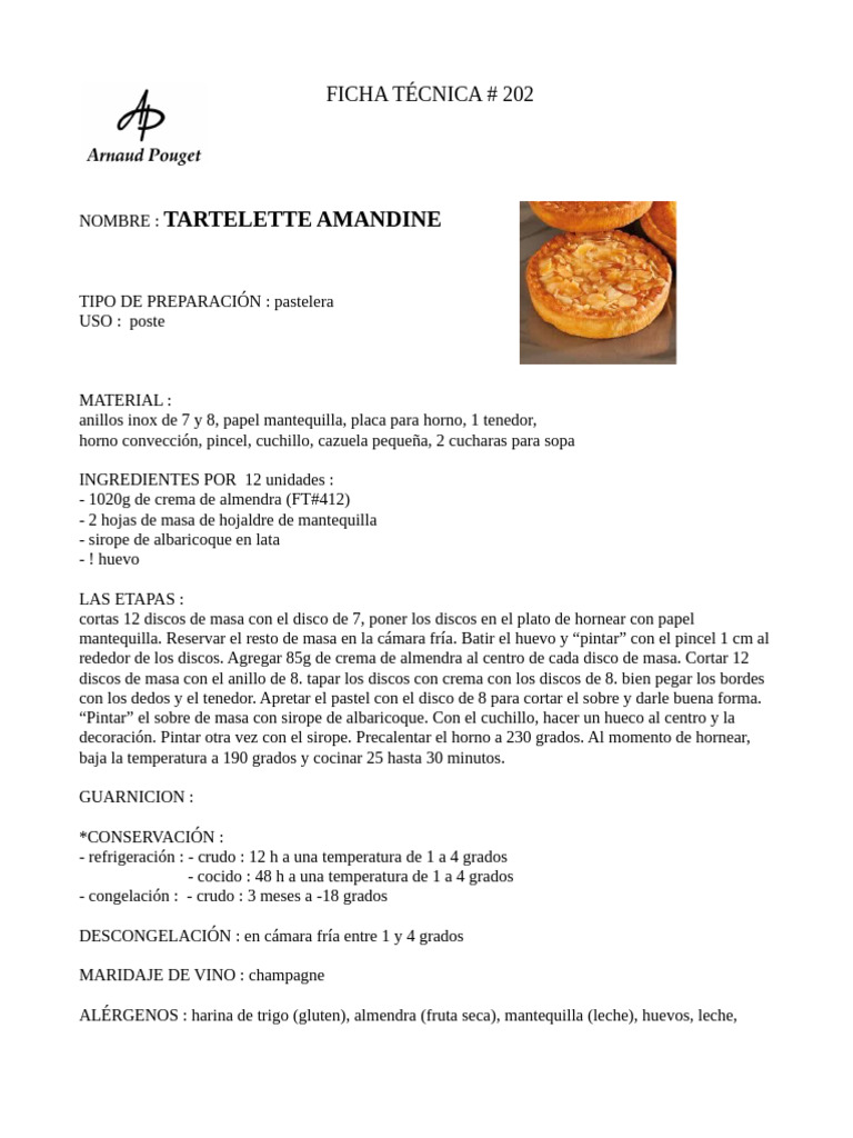 ALÉRGENOS : harina de trigo (gluten), almendra (fruta seca), mantequilla (leche), huevos, leche,