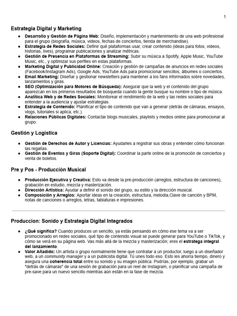 Produccion: Sonido y Estrategia Digital Integrados