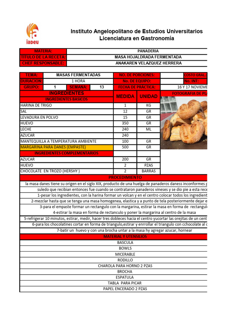 TÍTULO DE LA RECETA: MASA HOJALDRADA FERMENTADA