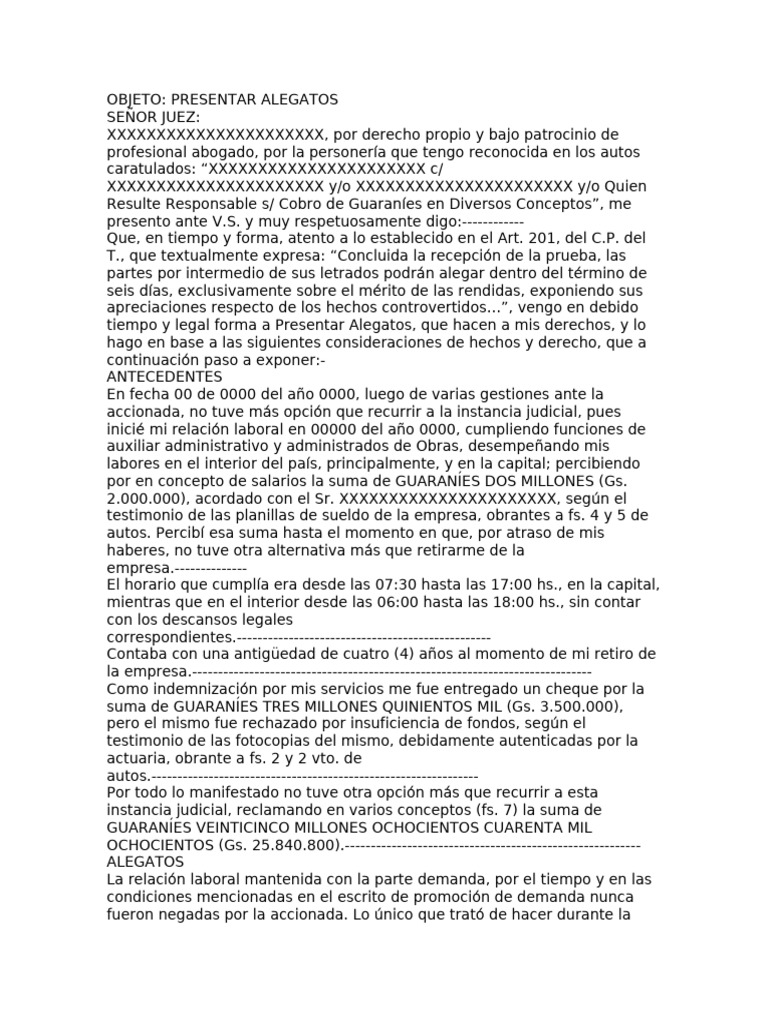 OBJETO: PRESENTAR ALEGATOS