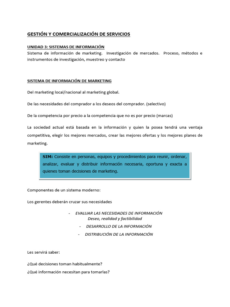 Sistema de información de marketing. Investigación de mercados. Proceso, métodos e