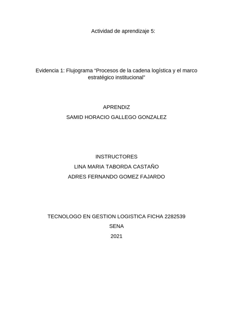 Evidencia 1: Flujograma “Procesos de la cadena logística y el marco