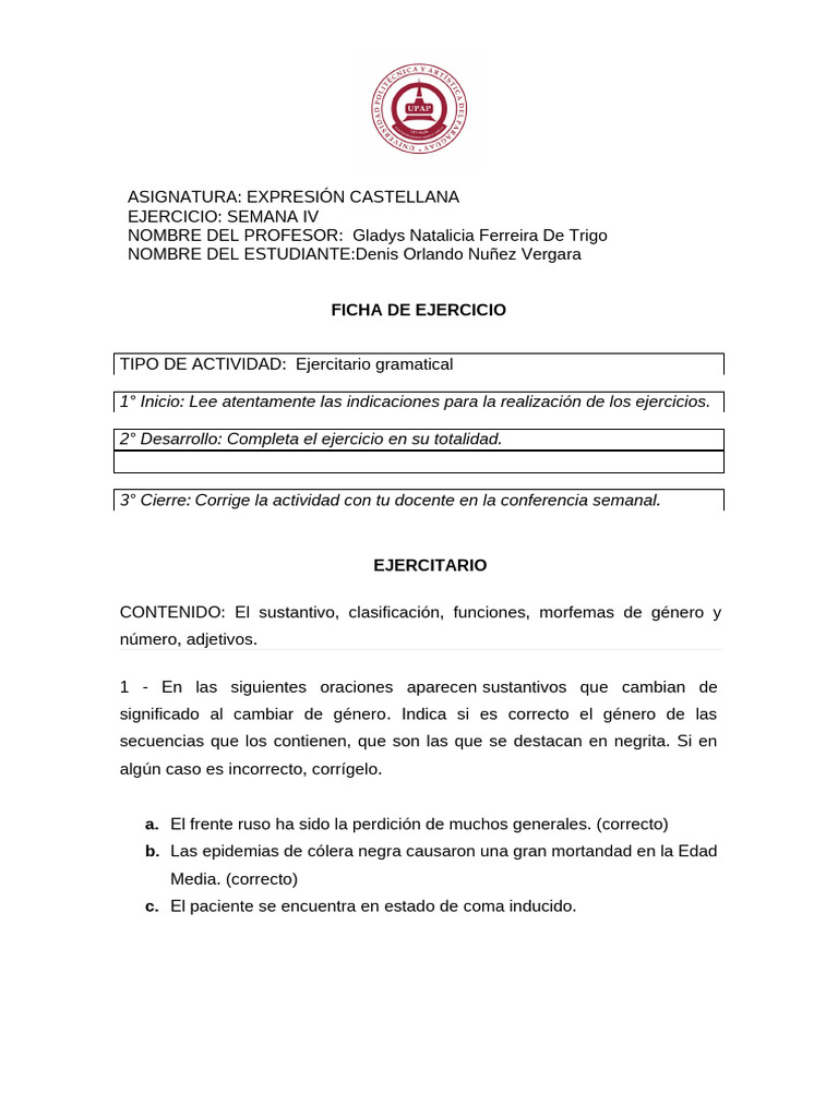 TIPO DE ACTIVIDAD: Ejercitario gramatical