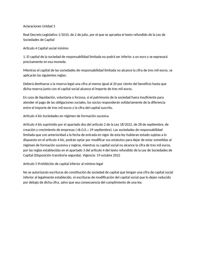 Capital (Disposición transitoria segunda). Vigencia: 19 octubre 2022