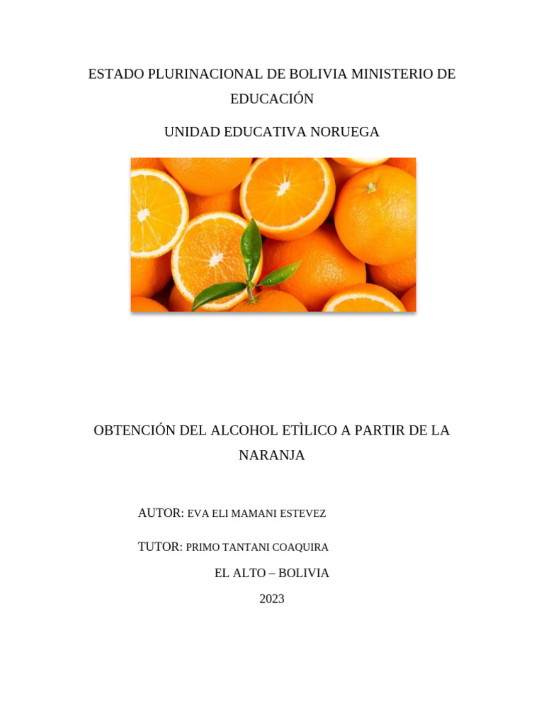 La obtención de alcohol etílico a partir de la naranja implica un proceso de fermentación y