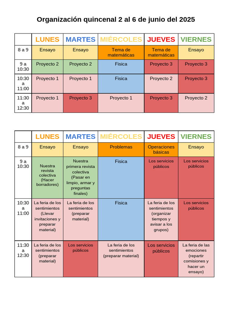 Organización quincenal 2 al 6 de junio del 2025