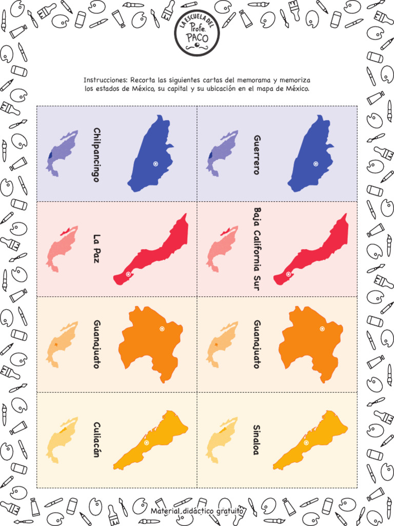Instrucciones: Recorta las siguientes cartas del memorama y memoriza