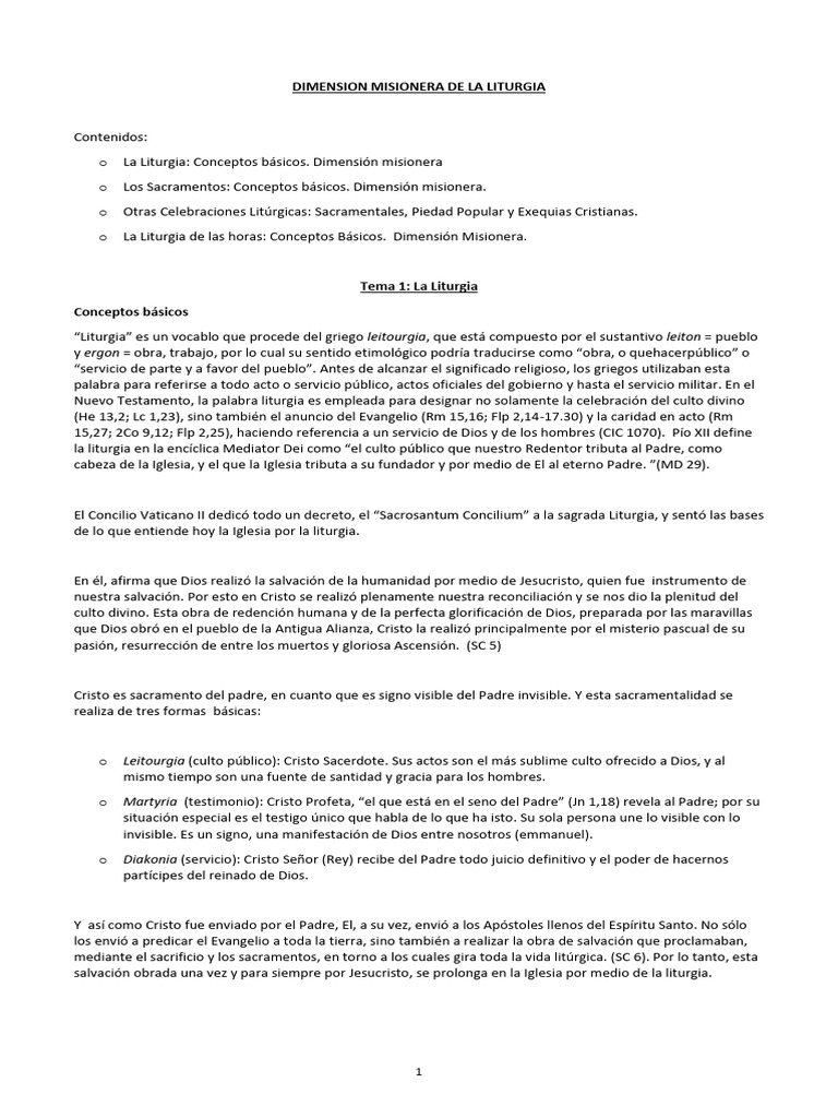 o La Liturgia: Conceptos básicos. Dimensión misionera