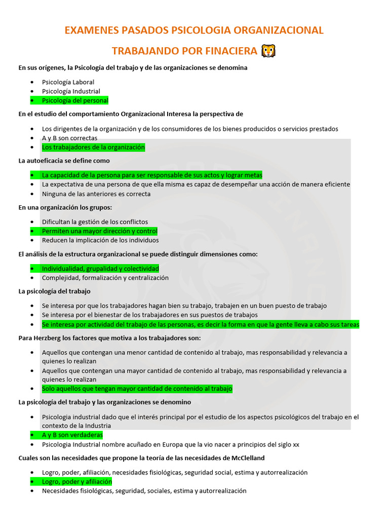 EXAMENES PASADOS PSICOLOGIA ORGANIZACIONAL