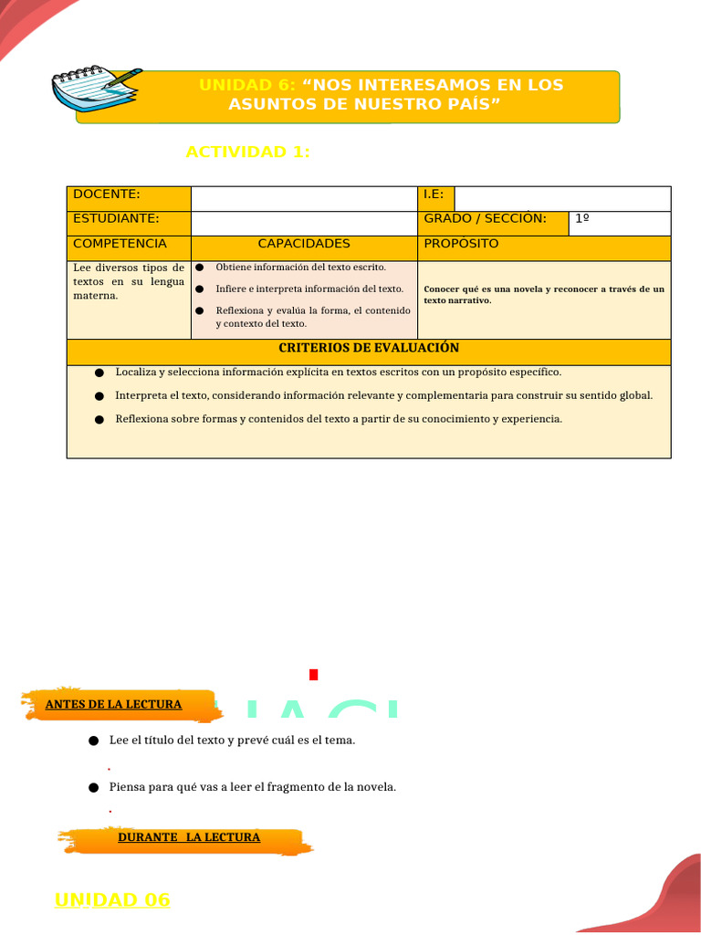 ESTUDIANTE: GRADO / SECCIÓN: 1º