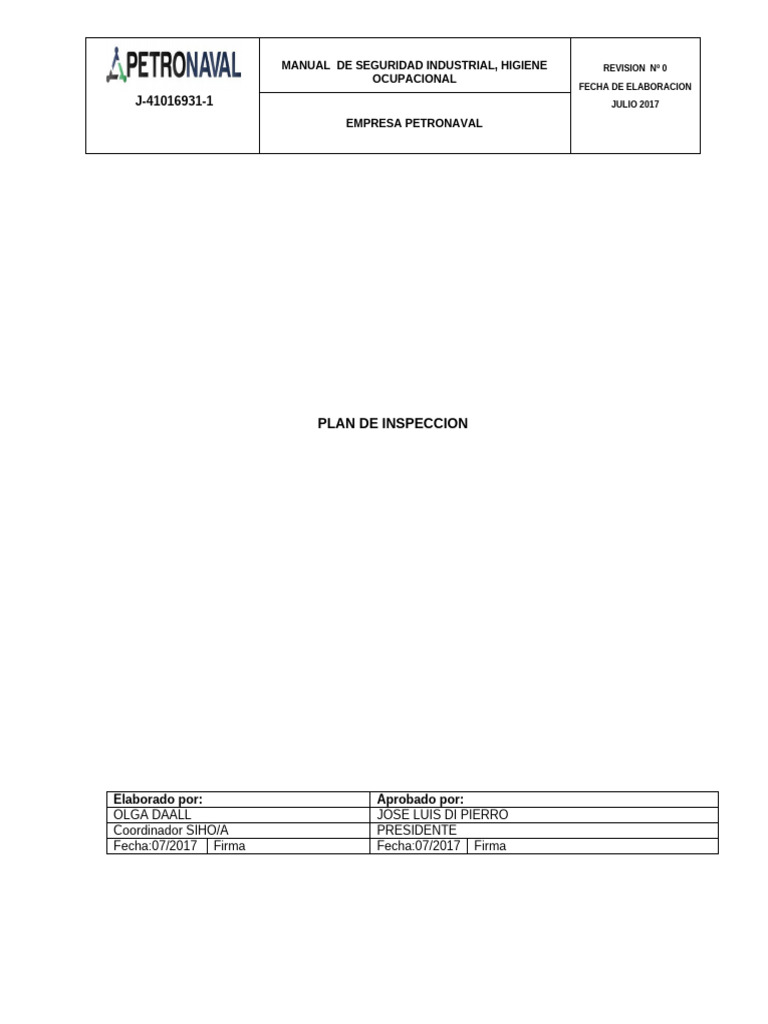 MANUAL DE SEGURIDAD INDUSTRIAL, HIGIENE REVISION Nº 0