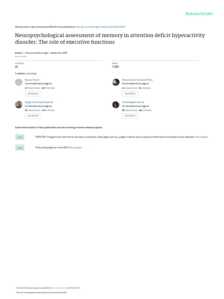 5. Rebollo MA, Montiel S. Atención y funciones ejecutivas. Rev Neurol in attention deficit hyperactivity disorder versus reasing disability. Dev