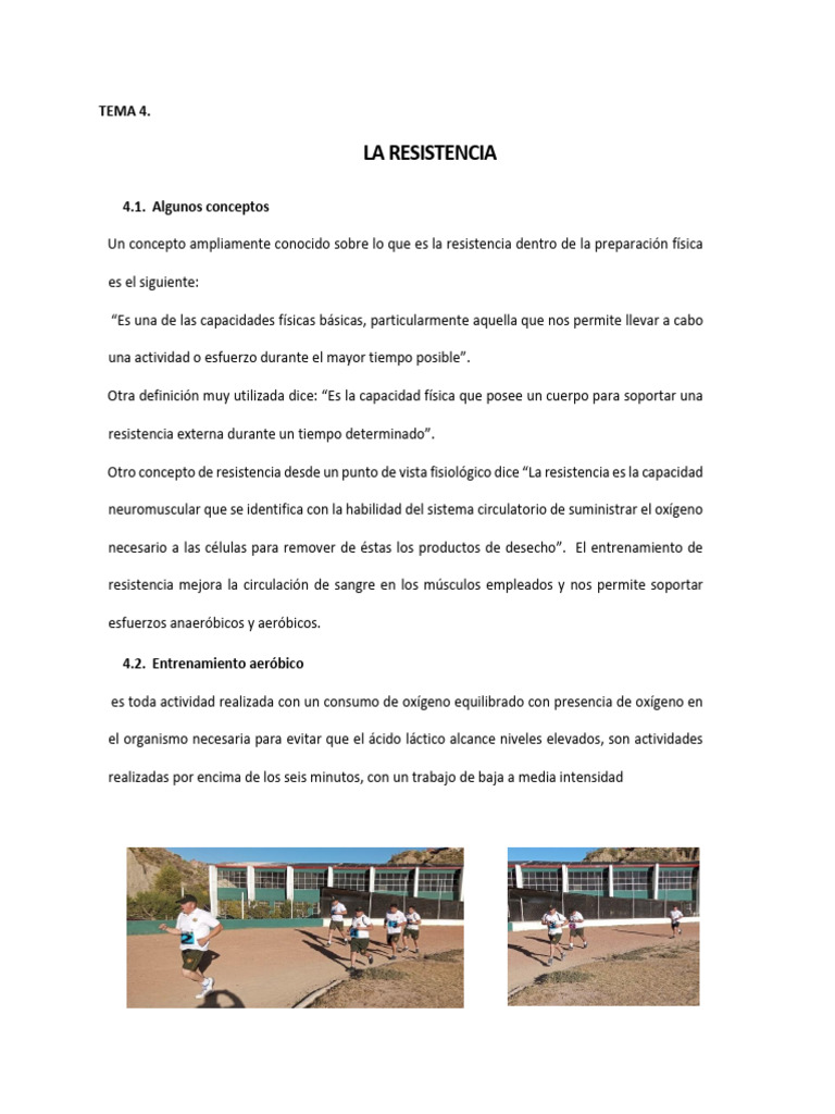 Otro concepto de resistencia desde un punto de vista fisiológico dice “La resistencia es la capacidad
