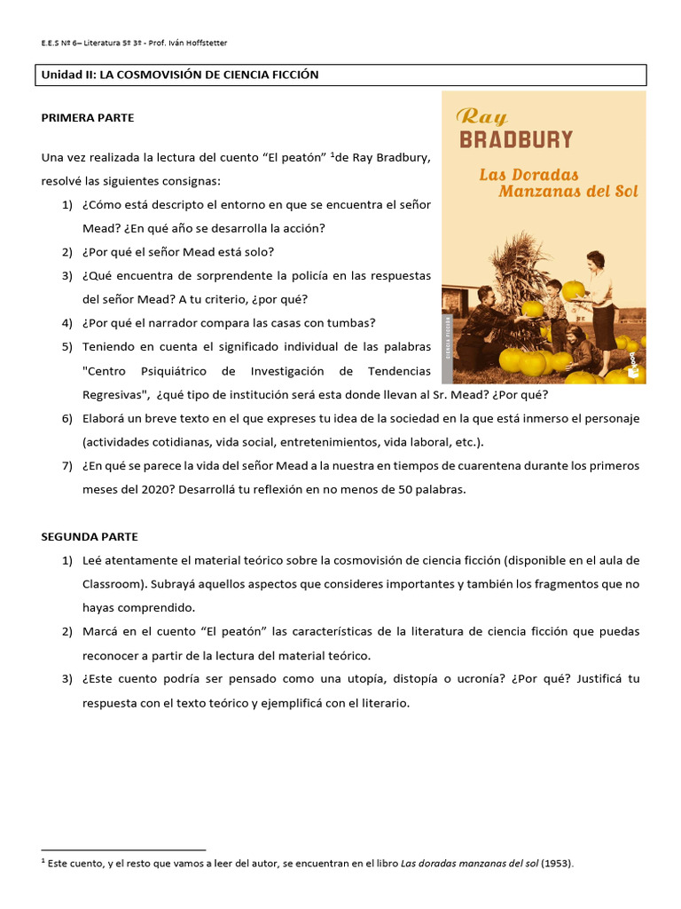 Una vez realizada la lectura del cuento “El peatón” 1de Ray Bradbury,