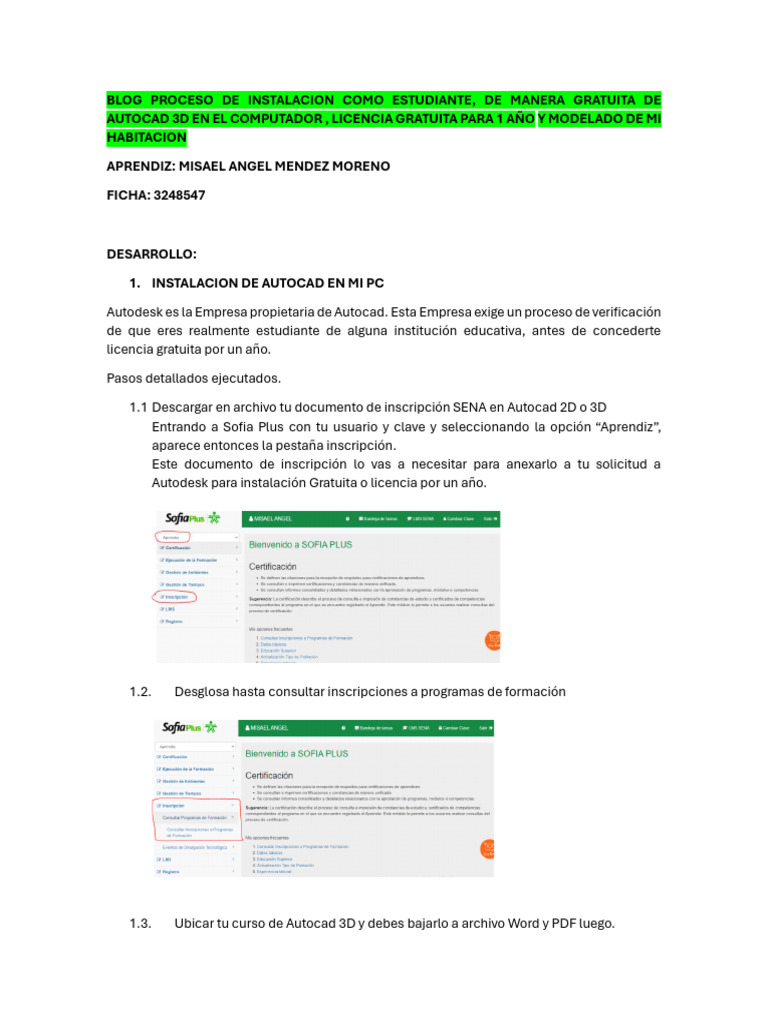 1.1 Descargar en archivo tu documento de inscripción SENA en Autocad 2D o 3D