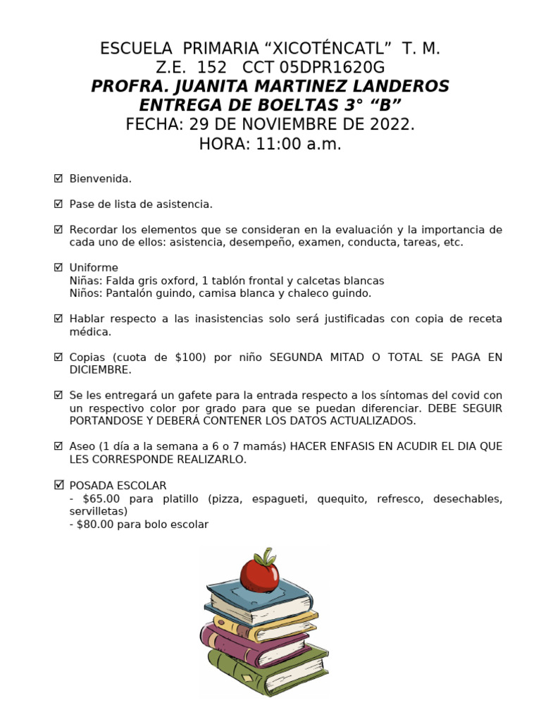 - $80.00 para bolo escolar