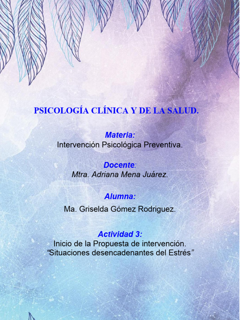 El inicio de la propuesta de intervención “Situaciones desencadenantes del Estrés” es una