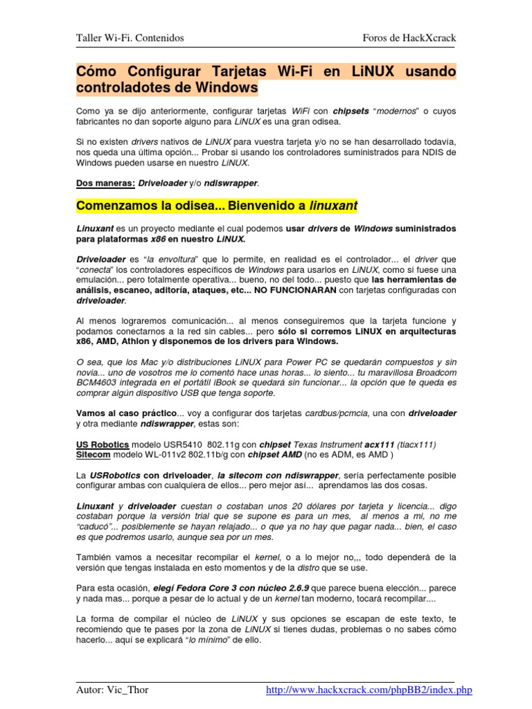 Cmo Configurar Tarjetas Wi-Fi en LiNUX usando controladotes de Windows