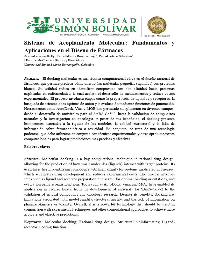 Resumen‒ El docking molecular es una técnica computacional clave en el diseño racional de