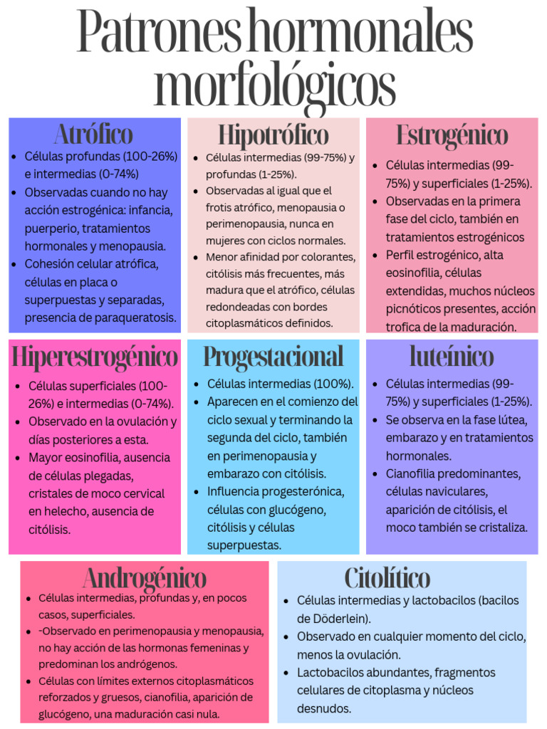 en helecho, ausencia de células con glucógeno, aparición de citólisis, el