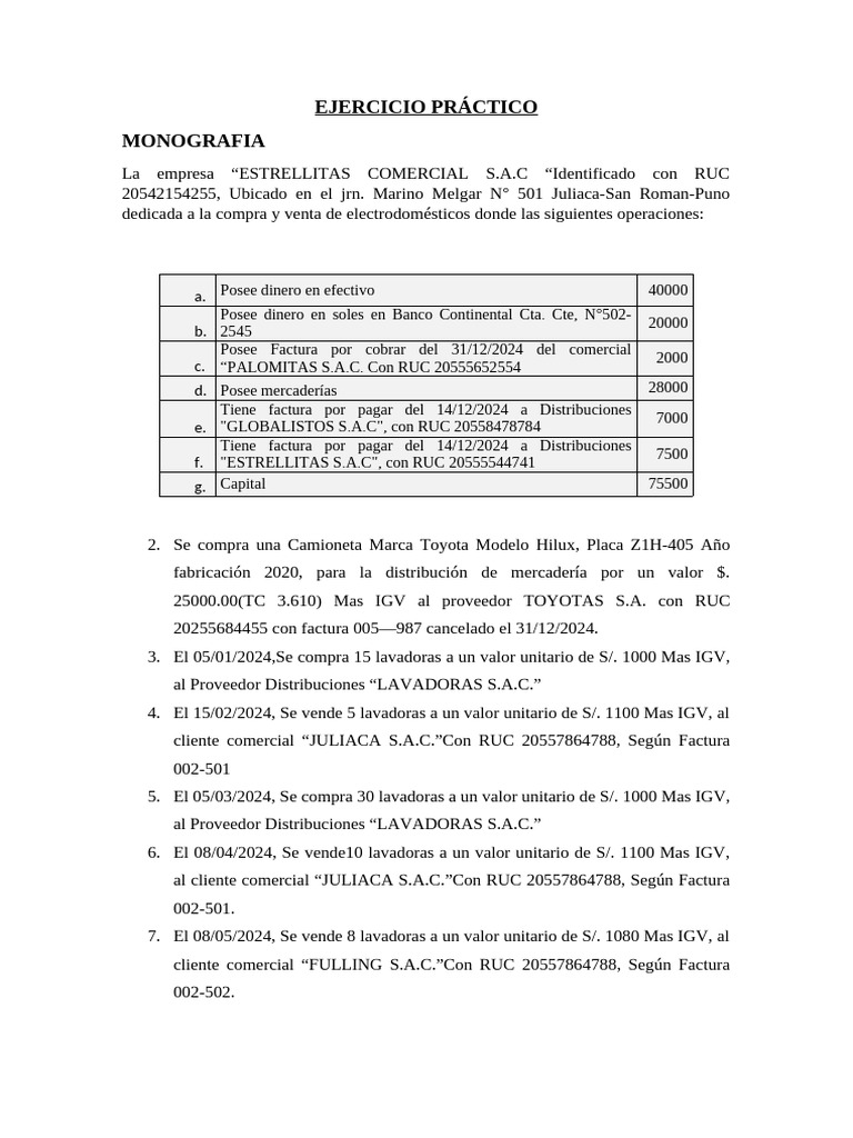 dedicada a la compra y venta de electrodomésticos donde las siguientes operaciones:
