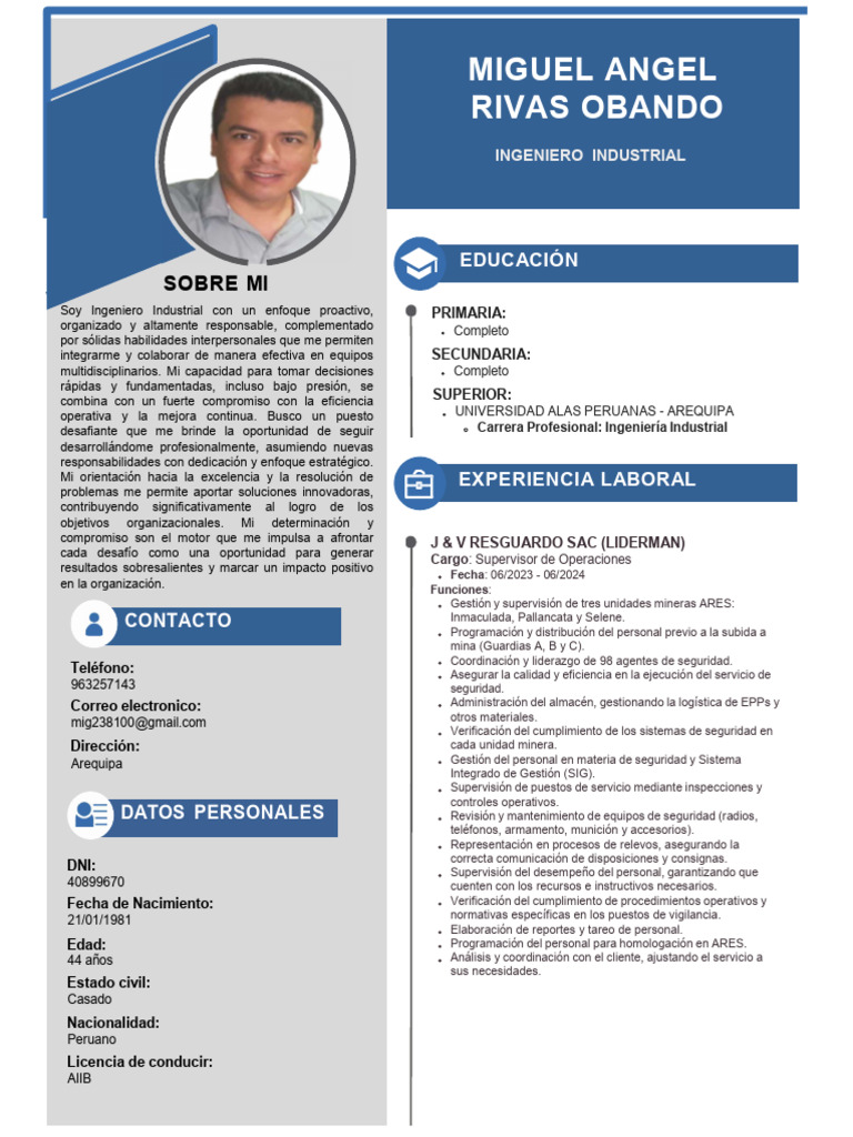Cargo: Supervisor de Operaciones