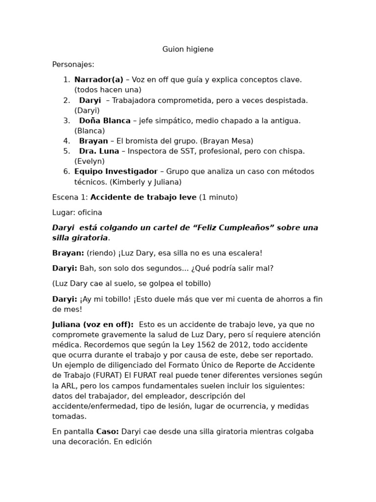 Juliana (voz en off): Esto es un accidente de trabajo leve, ya que no