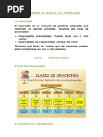 Una oración está formada por un sujeto y un predicado. El sujeto tiene siempre como núcleo un sustantivo y nunca