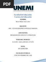 puede comenzar por una preposición. El predicado tiene como núcleo un verbo, que puede ir conjugado en un