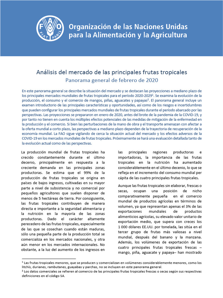 los principales mercados mundiales de frutas tropicales para el período 2020-20291. Se examina la evolución de la