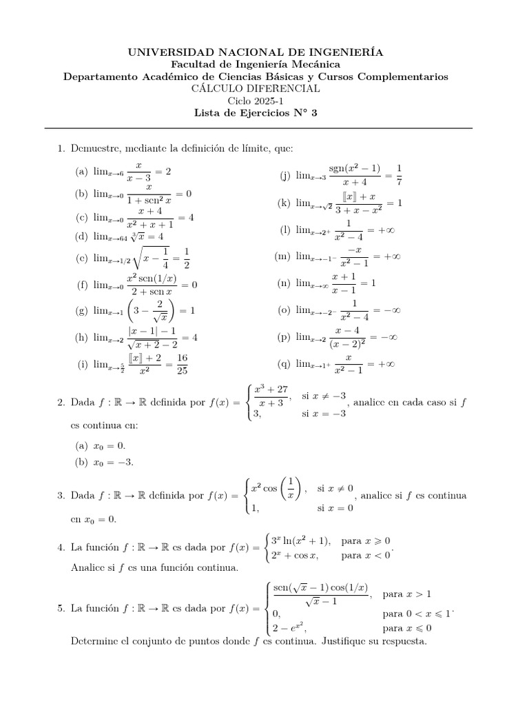1. Demuestre, mediante la definición de límite, que: