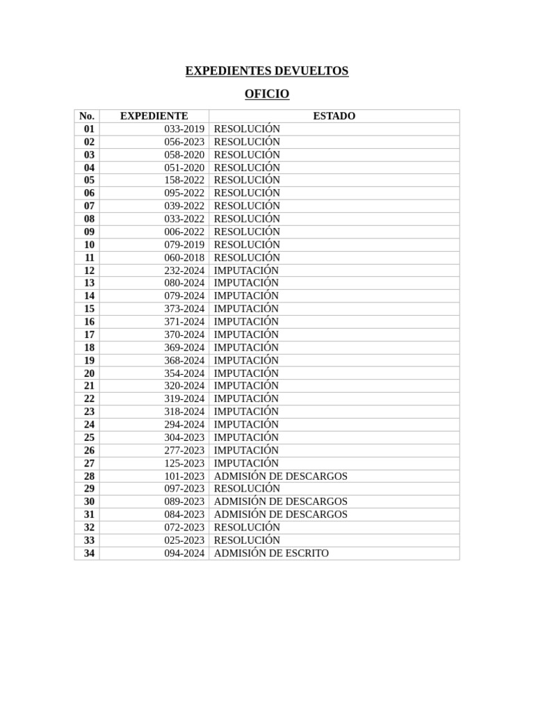 EXPEDIENTES DEVUELTOS