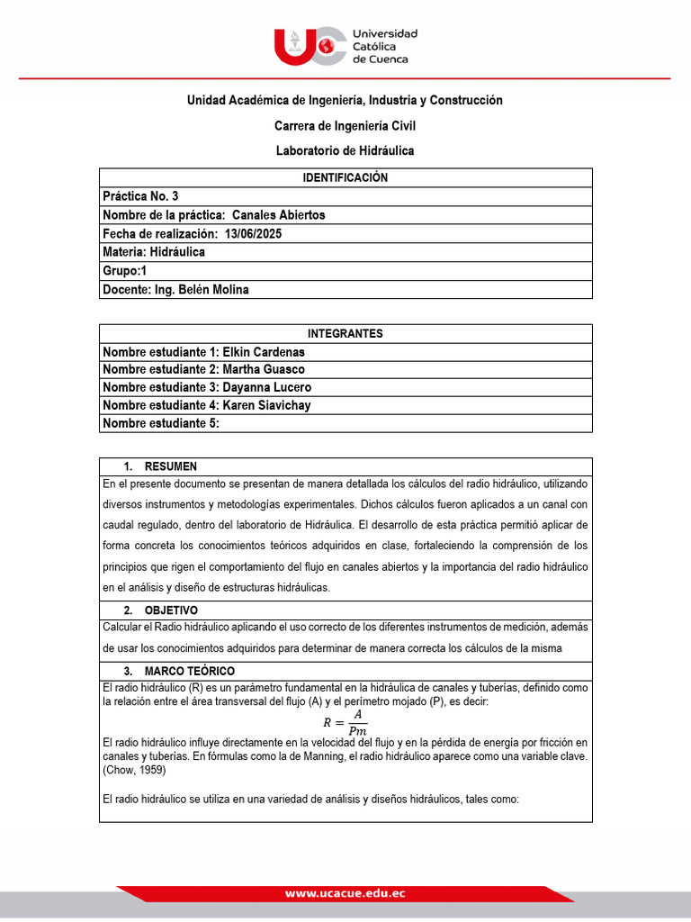 En el presente documento se presentan de manera detallada los cálculos del radio hidráulico, utilizando