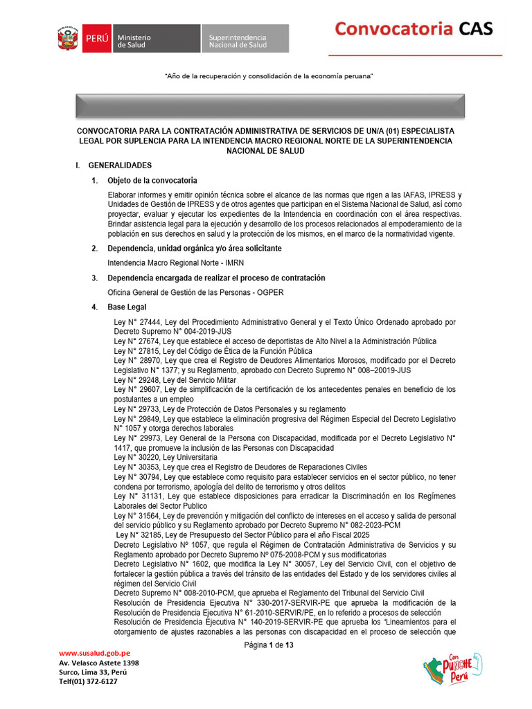BASES DEL PROCESO DE SELECCIÓN CAS N° 088-2025-SUSALUD