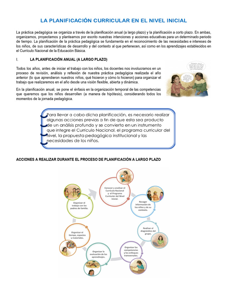 La práctica pedagógica se organiza a través de la planificación anual (a largo plazo) y la planificación a corto plazo. En ambas,