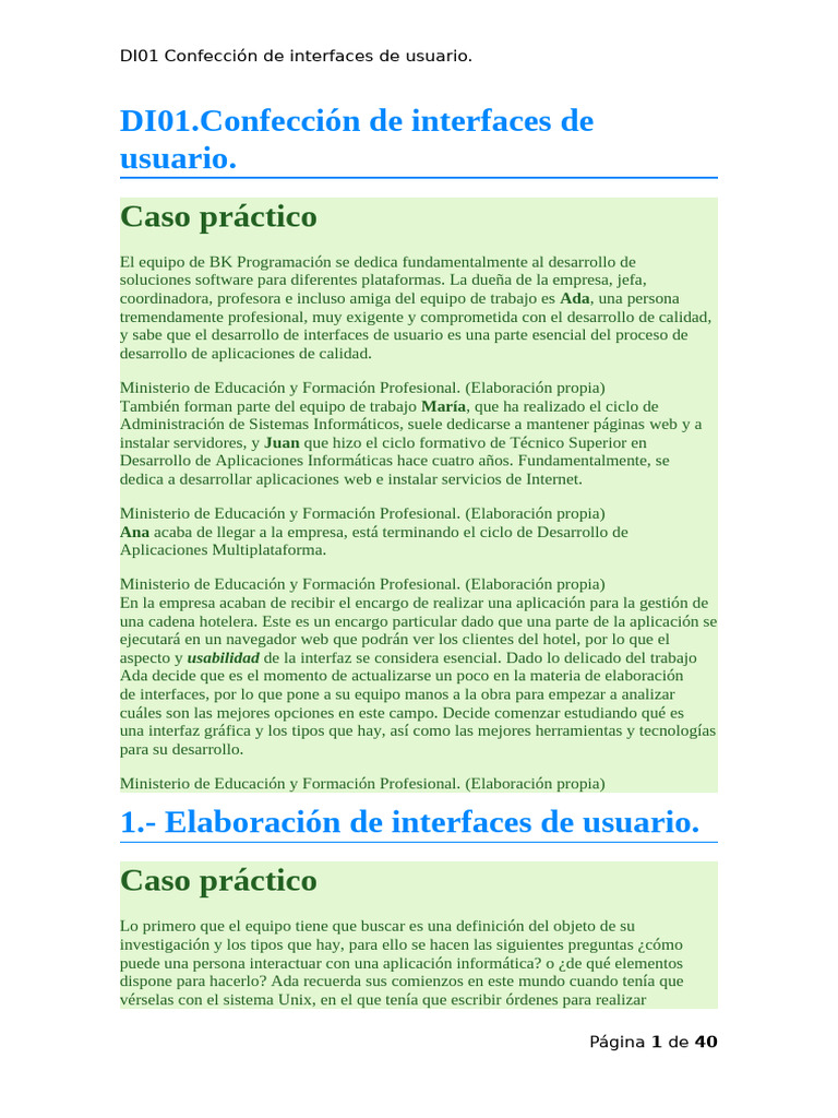 aspecto y usabilidad de la interfaz se considera esencial. Dado lo delicado del trabajo