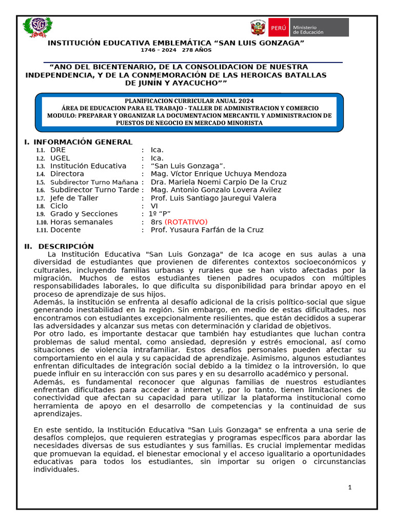Planificacion Anual 2024 1° P 8 HRS Rotativo