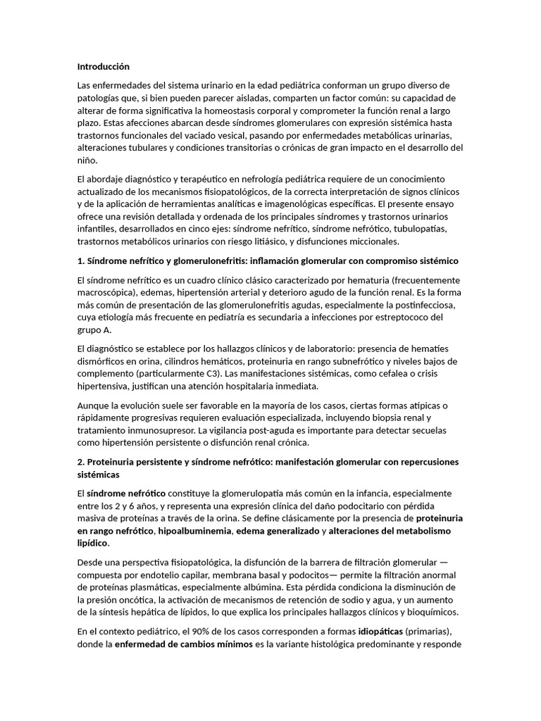 Las enfermedades del sistema urinario en la edad pediátrica conforman un grupo diverso de