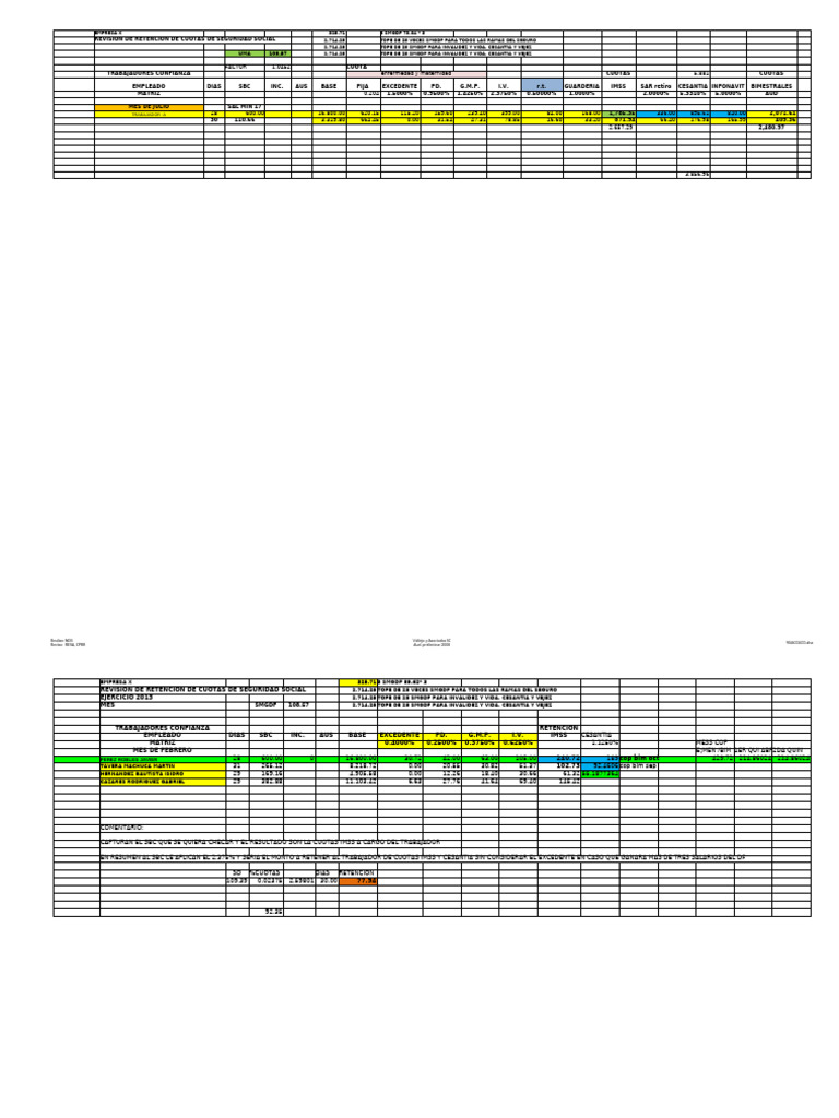 EMPLEADO DIAS SBC INC. AUS BASE FIJA EXCEDENTE PD. G.M.P. I.V. r.t. GUARDERIA IMSS SAR retiro CESANTIA INFONAVIT BIMESTRALES