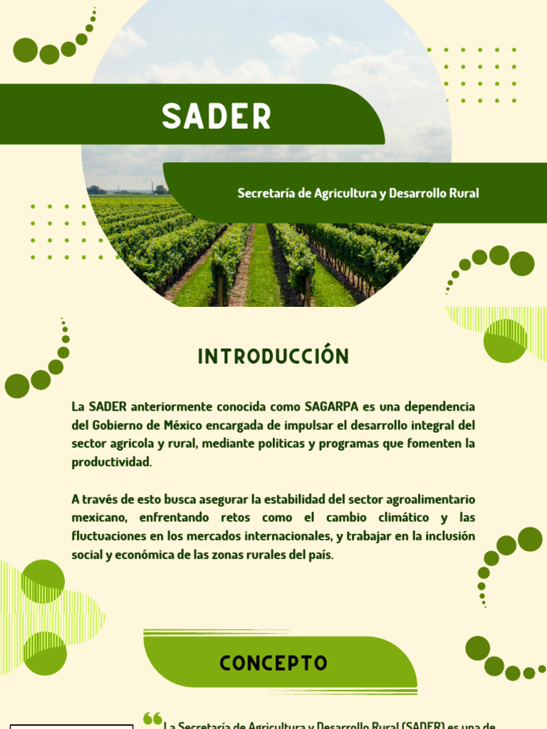 La SADER es una dependencia del gobierno mexicano encargada de la formulación,