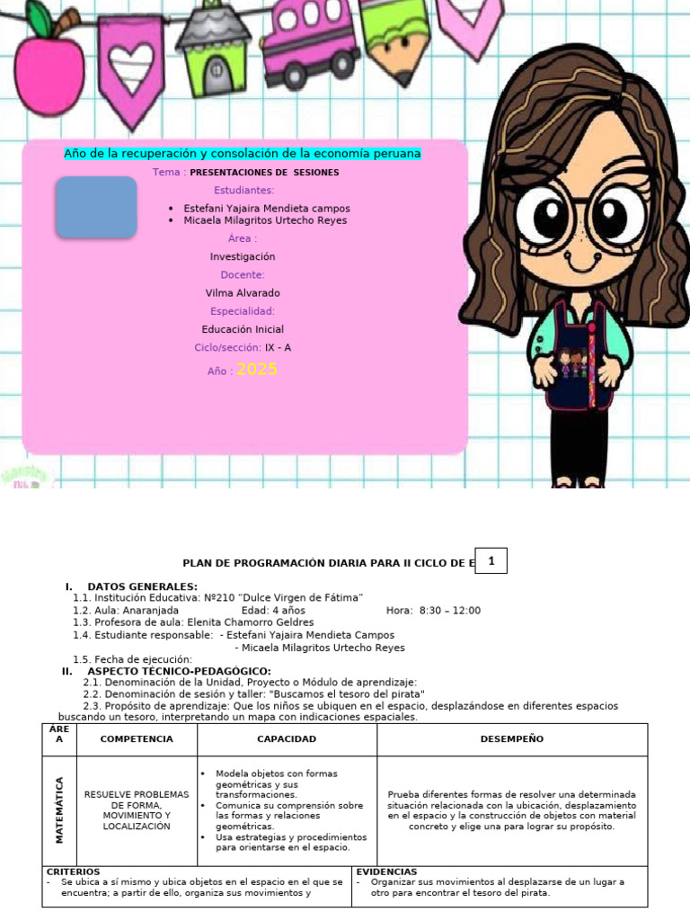 PLAN DE PROGRAMACIÓN DIARIA PARA II CICLO DE EBR1N°