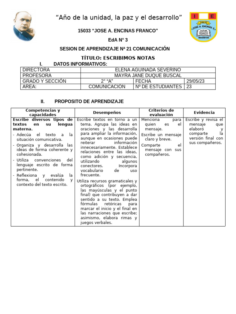 SESION DE APRENDIZAJE Nª 21 COMUNICACIÓN