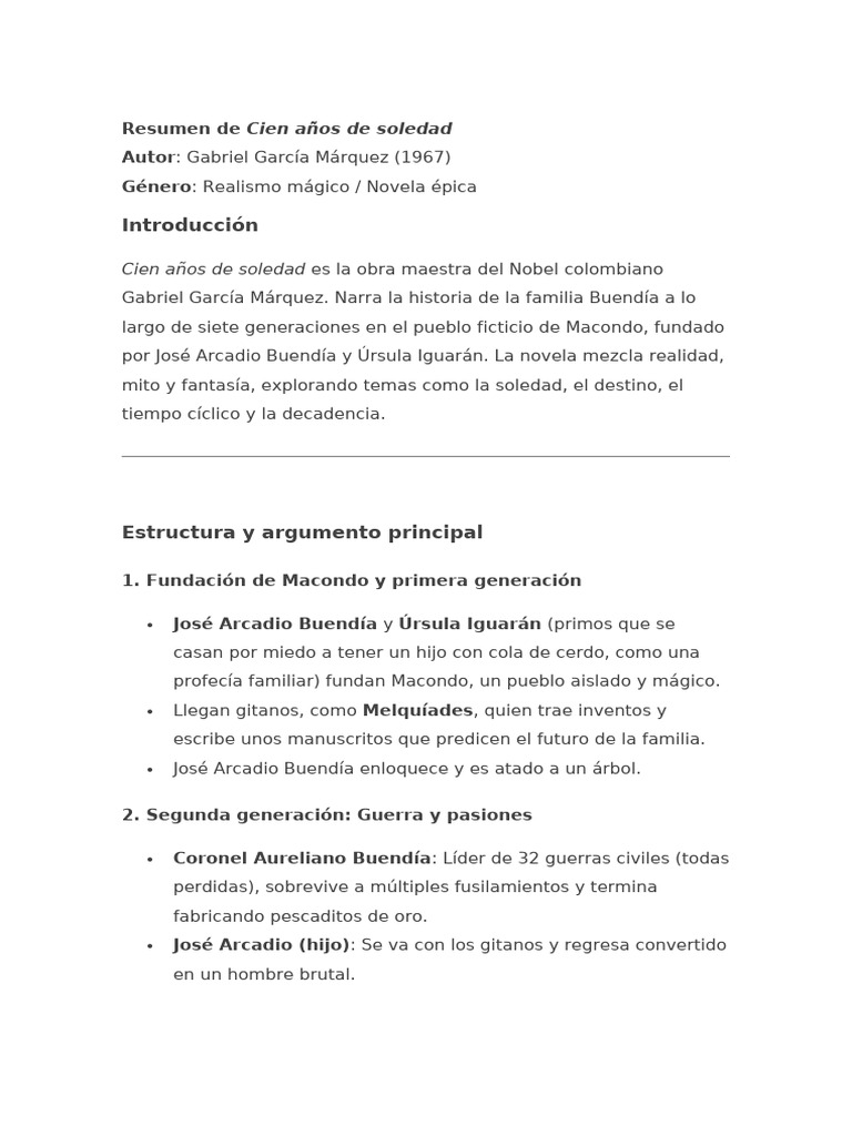 largo de siete generaciones en el pueblo ficticio de Macondo, fundado