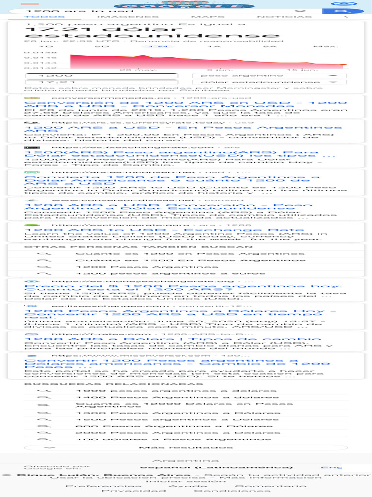 1200(ARS) Peso argentino(ARS) Para Dólar